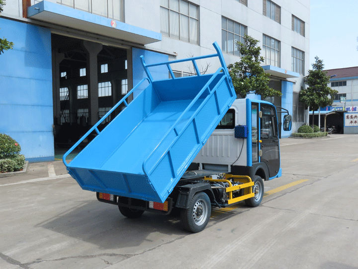 加装自主研发的电动液压升降机构,箱体后翻角度大,卸载自如,操作简易,方便灵活,安全可靠。